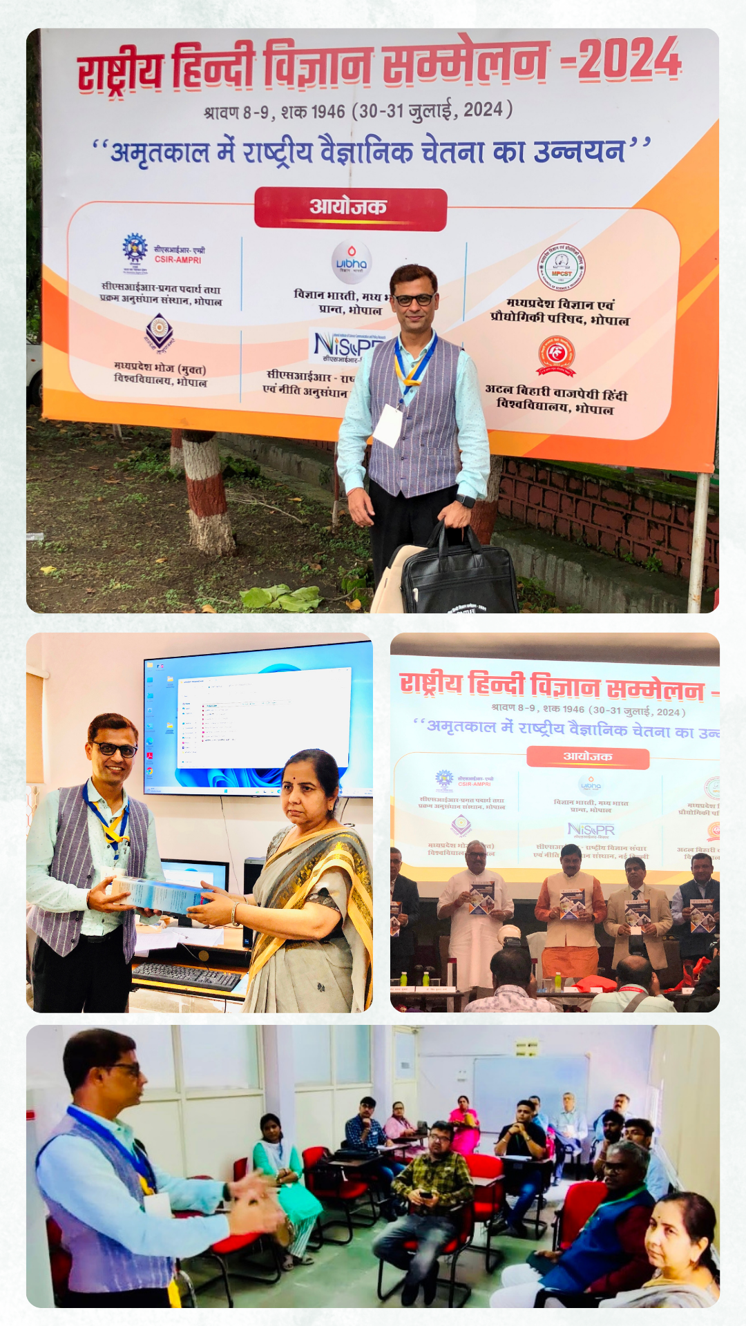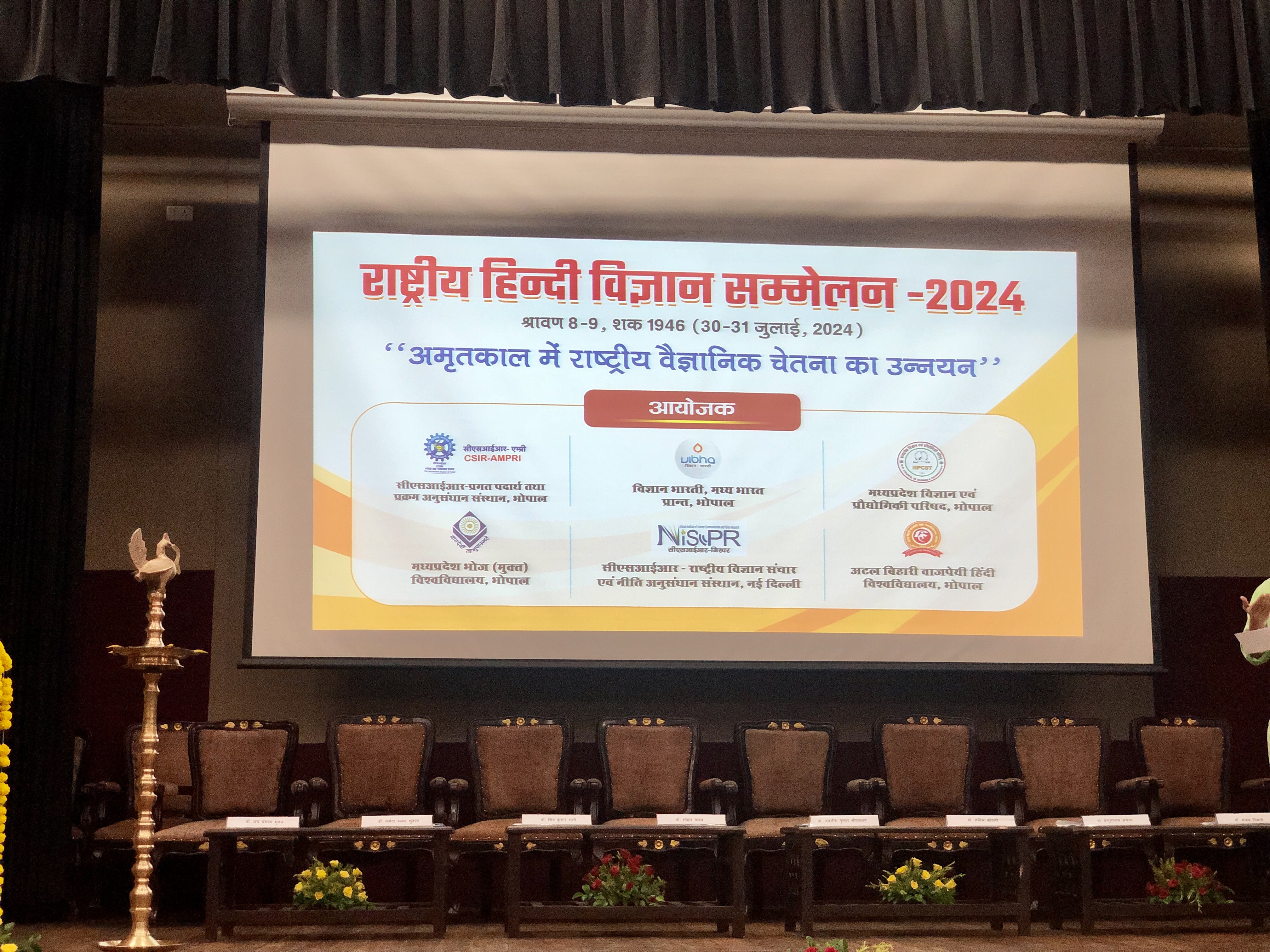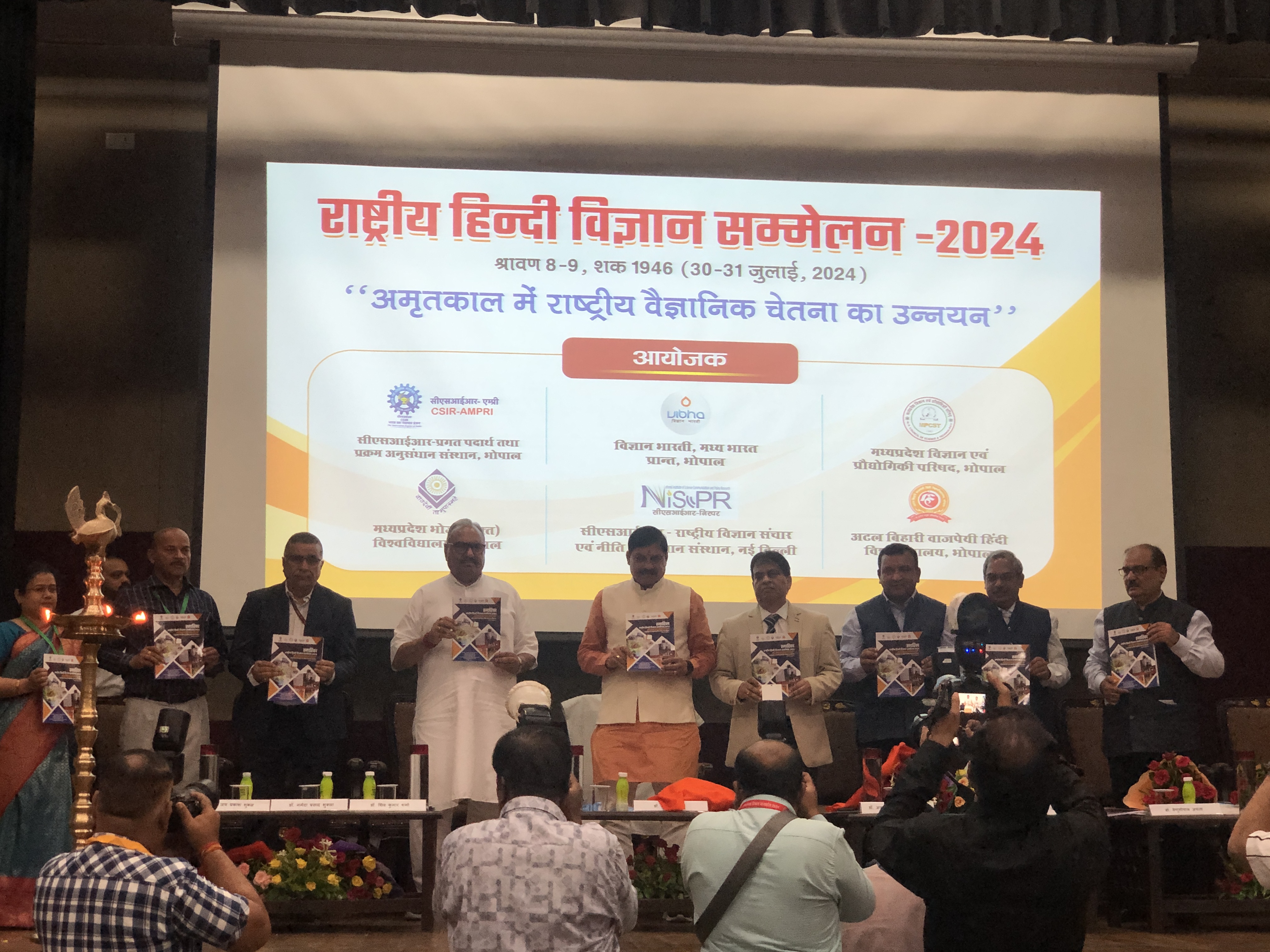 आज, 30 जुलाई 2024 को, देश का सबसे बड़ा राष्ट्रीय सम्मेलन - 'राष्ट्रीय हिंदी विज्ञान सम्मेलन 2024' भोपाल में हो रहा है, जिसमें देश भर के नवाचारों को उनके रिसर्च को प्रदर्शित करने का मौका मिल रहा है। पूरे देश से 250 से अधिक रिसर्च पेपर्स प्रस्तुत किए गए हैं, और विभिन्न स्थानों पर प्रस्तुतियां हो रही हैं। इस सम्मेलन का मुख्य उद्देश्य हिंदी भाषा में रिसर्च को बढ़ावा देना है। इस सम्मेलन की प्रक्रियाओं को खुद मुख्यमंत्री डॉ. मोहन यादव ने रिलीज किया है। यह कार्यक्रम 31 जुलाई तक जारी रहेगा। यह सम्मेलन CSIR-AMPRI, विज्ञान भारती - विद्या परिषद, MPCST, भोज मुक्त विश्वविद्यालय, NIScPR, और अटल बिहारी वाजपेयी हिंदी विश्वविद्यालय के सहयोग से आयोजित किया गया है।