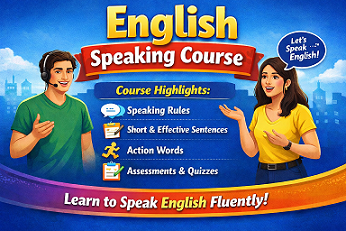 Is course ko smart words ke sath me har umar ke logo ke liye design aur develop kiya gaya hai expert team ke dwara, jisse ki aasani se English me bol paye aur samjh sake aap vo bhi kuch dino me. "Aaiye Sikhna Suru Karte Hai"